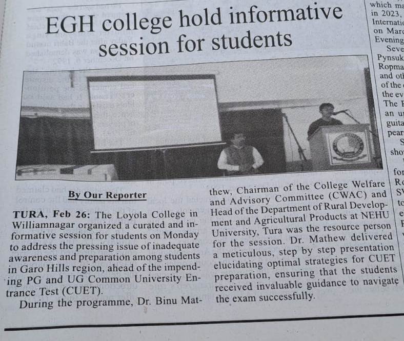 23 August 2023 (Hub News)Loyola College Williamnagar celebrates academic achievement; students secure 16 ranks in NEHU exams